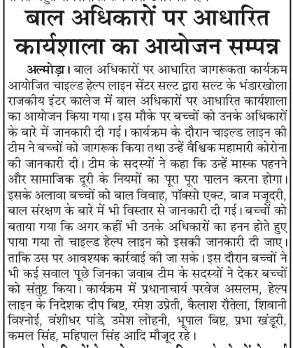 NEWS COVERAGE OF THE LAUNCH OF CHILDLINE SE DOSTI CAMPAIGNNEWS COVERAGE OF THE LAUNCH OF CHILDLINE SE DOSTI CAMPAIGN